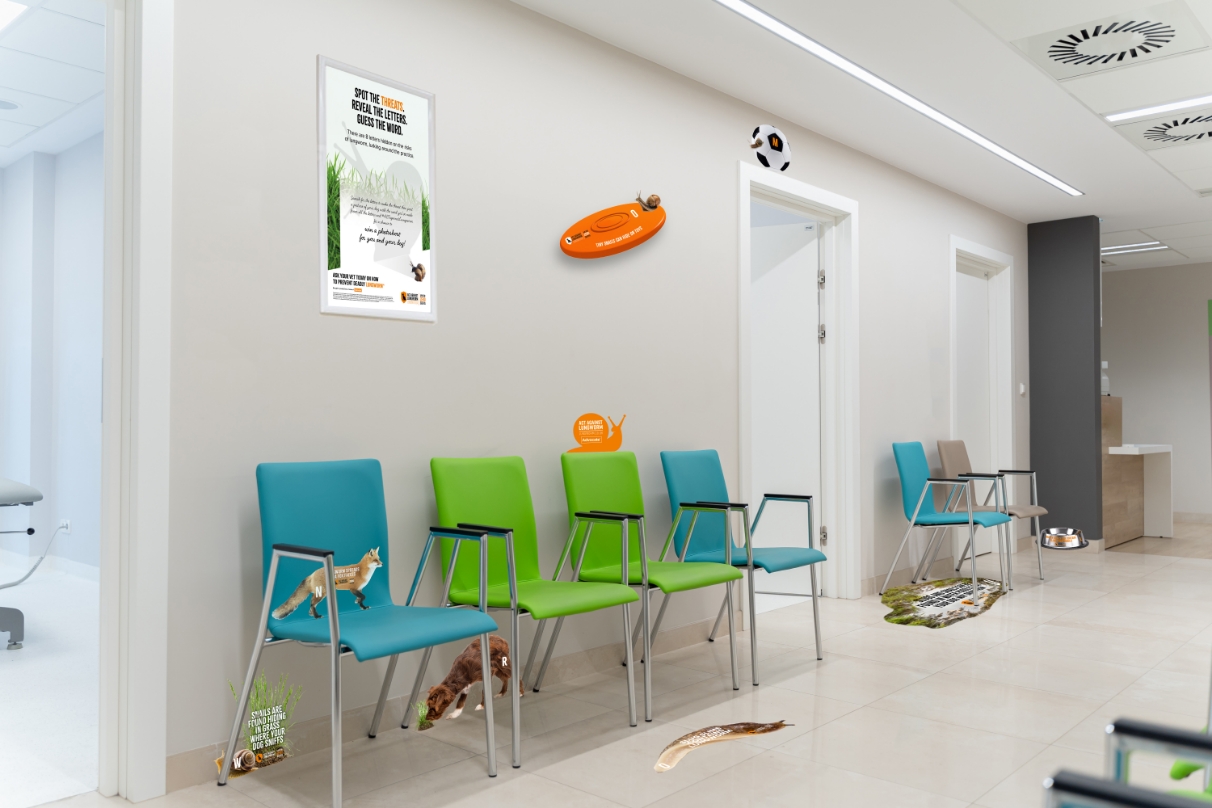Our campaign was rolled out across both veterinary and consumer channels, featuring in advertising (print and digital), social media, in practice materials, and a major presence at BVA Live and even extending the message to ‘The Golden Snail’ pub environment for delegates to learn more about lungworm.